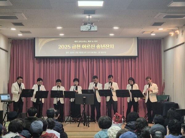 2025년 12월 19일(금), 서울 금천노인종합복지관(구자훈 관장)에서 송년잔치를 열어 한 해를 함께한 회원들과 따뜻하게 마무리하는 시간을 가졌다. 이날 행사에는 약 300명의 회원이 참여했으며, 유성훈 금천구청장과 이인식 금천구의회 의장이 함께해 자리를 빛냈다.